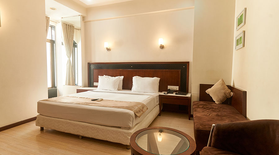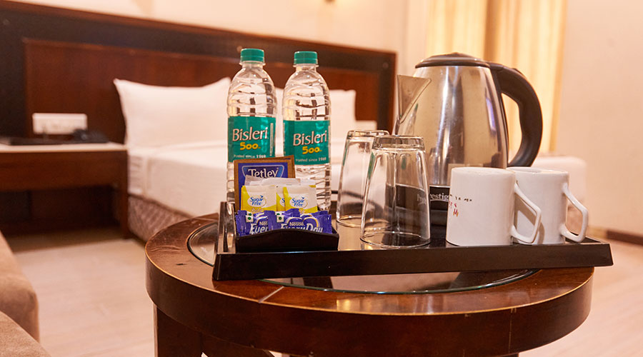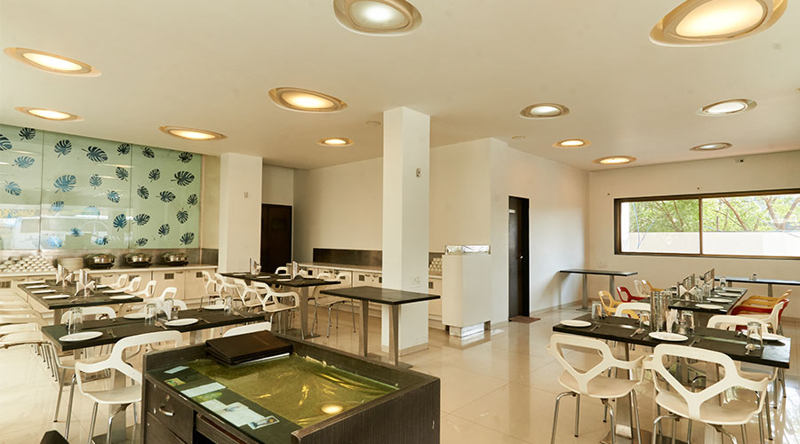 comfortable rooms with modern amenities and pure vegetarian dining.