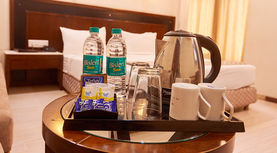 comfortable rooms with modern amenities and pure vegetarian dining.
